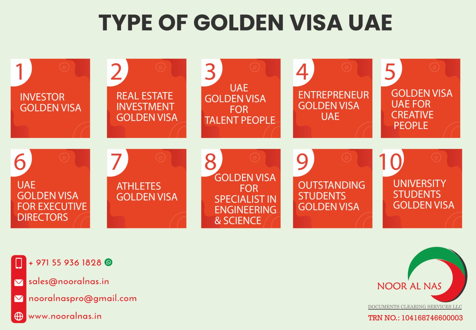 Time is money and you cannot spend your valuable treasure standing in the queues of various government departments waiting for your turn, while your business suffers your absence. You can easily spend it at a better place & productive work by hiring best NOOR AL NAS services company in Dubai to get the job done on time.